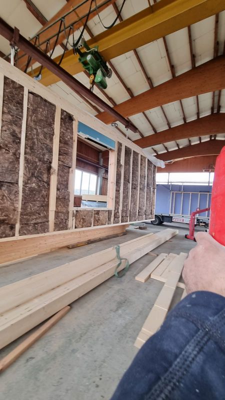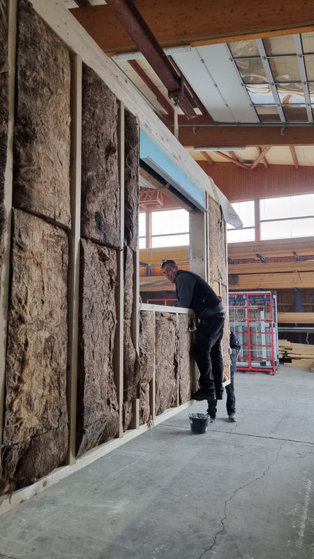 Dank moderner Vorfertigung läuft alles wetterunabhängig, präzise und effizient – jedes Element wird sorgfältig vorbereitet, gedämmt und montagefertig gemacht.